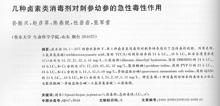 幾種鹵素類消毒劑對刺參幼參的急性毒性作用