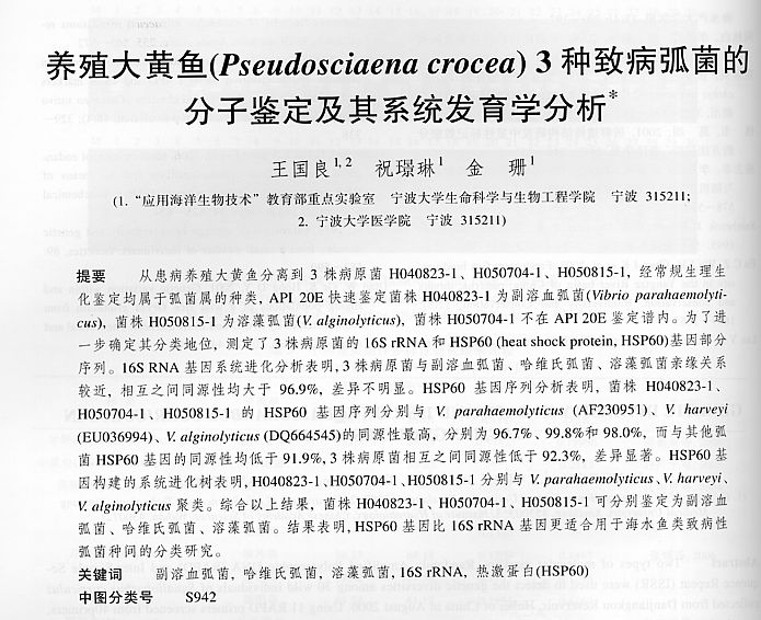 養(yǎng)殖大黃魚(yú)(Pseudosciaena crocea)3種致病弧菌的分子鑒定及其系統(tǒng)發(fā)育學(xué)分析