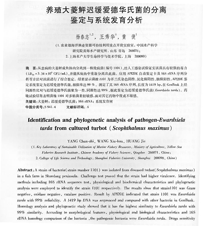 養(yǎng)殖大菱鲆遲緩愛德華氏菌的分離鑒定與系統(tǒng)發(fā)育分析1