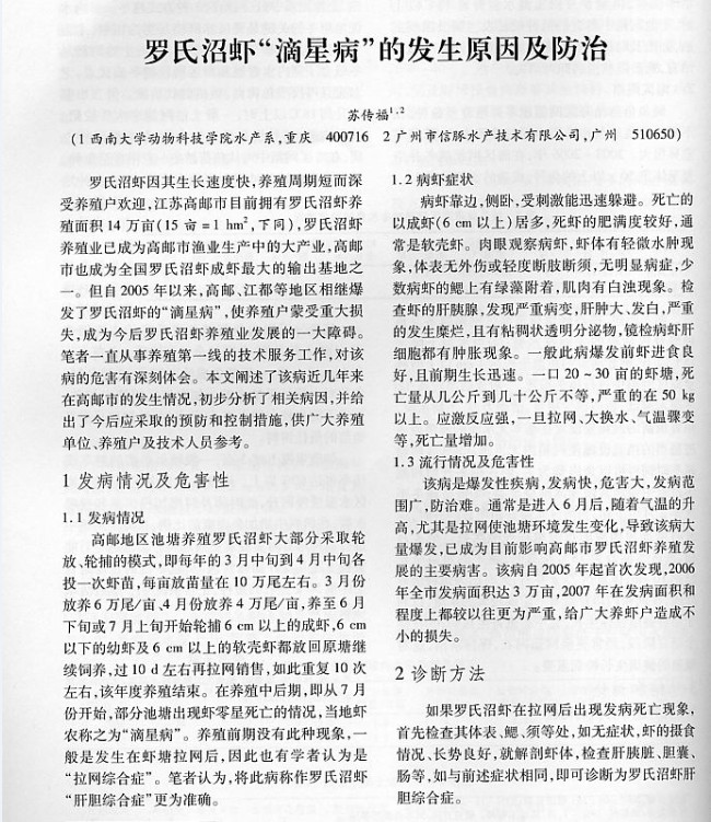 羅氏沼蝦“滴星病”的發(fā)生原因及防治1