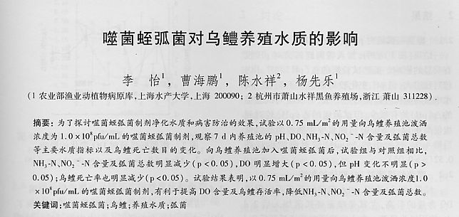 噬菌蛭弧菌對烏鱧養(yǎng)殖水質(zhì)的影響
