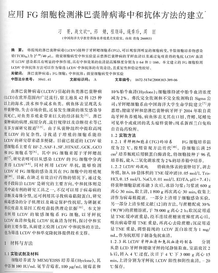 應(yīng)用FG細胞檢測淋巴囊腫病毒中和抗體方法的建立1