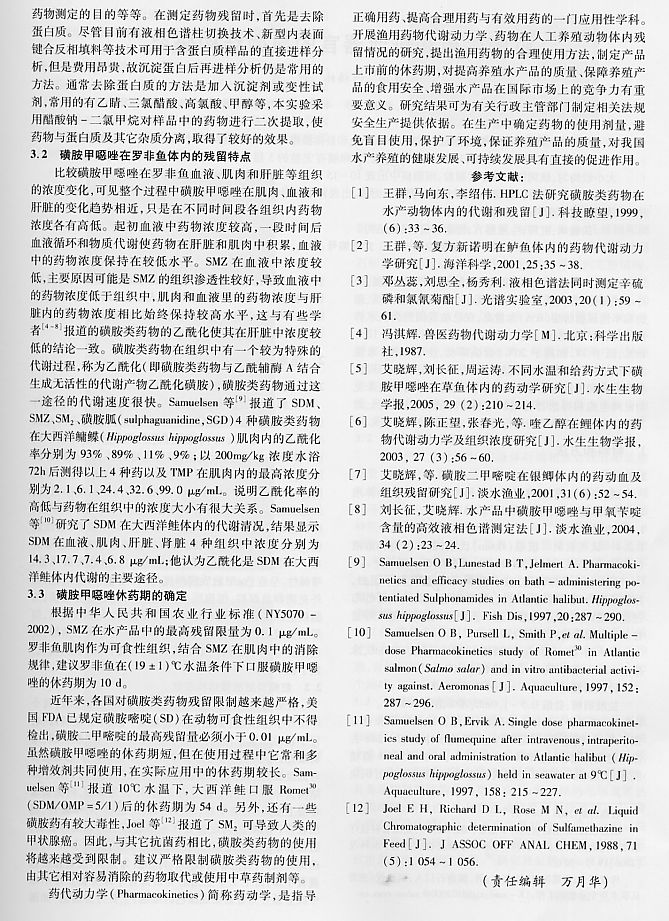 磺胺甲噁唑在羅非魚體內(nèi)的藥代動力學及組織濃度研究3