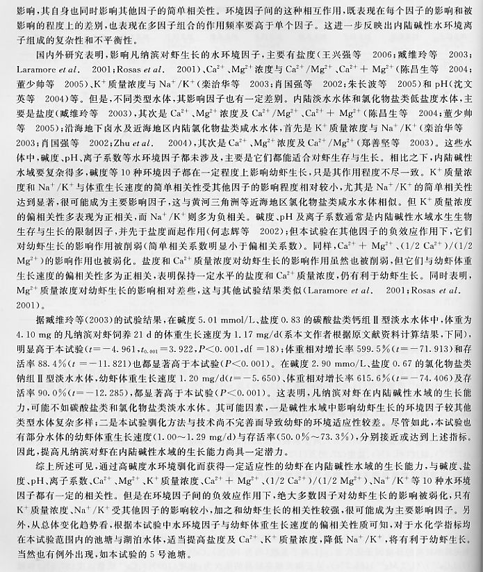 內(nèi)陸堿性水域凡納濱對(duì)嚇生長與環(huán)境因子的關(guān)系8