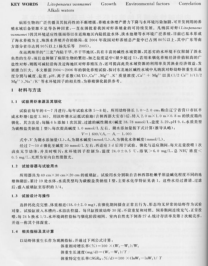 內(nèi)陸堿性水域凡納濱對嚇生長與環(huán)境因子的關(guān)系2