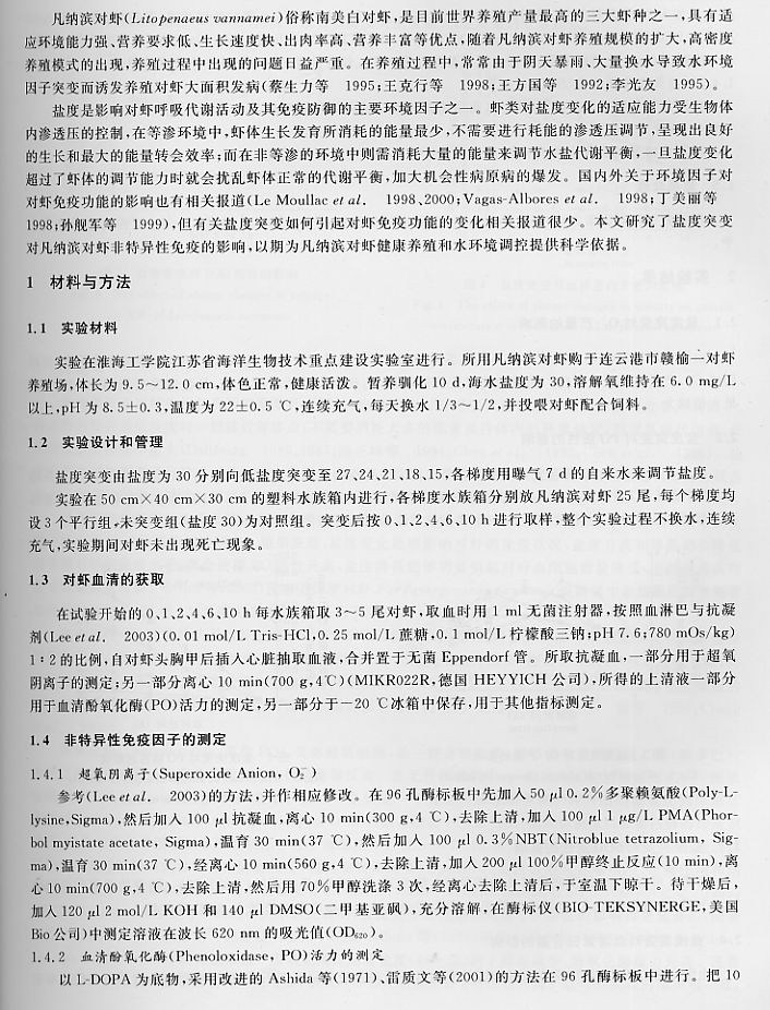 鹽度突變對(duì)凡納濱對(duì)蝦非特異性免疫因子的影響2