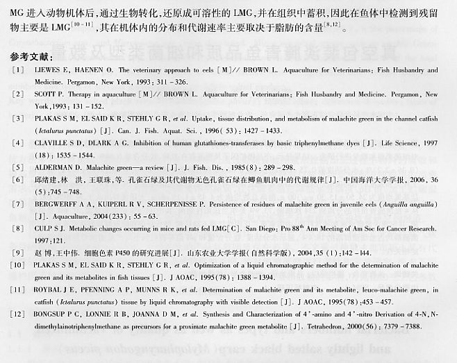 孔雀石綠及其主要代謝產(chǎn)物在歐洲鰻鱺體內(nèi)的蓄積及消除規(guī)律7