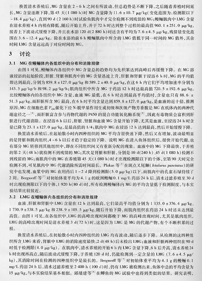 孔雀石綠及其主要代謝產(chǎn)物在歐洲鰻鱺體內(nèi)的蓄積及消除規(guī)律6