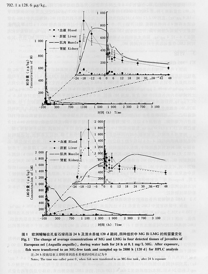 孔雀石綠及其主要代謝產(chǎn)物在歐洲鰻鱺體內(nèi)的蓄積及消除規(guī)律5