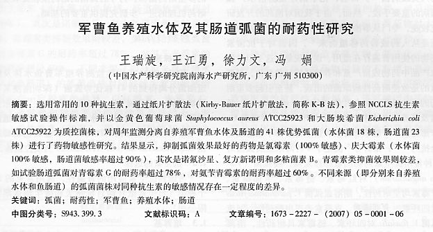 軍曹魚養(yǎng)殖水體及其腸道弧菌的耐藥性研究