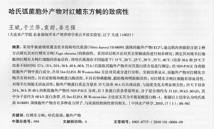 哈氏弧菌胞外產(chǎn)物對紅鰭東方鲀的致病性