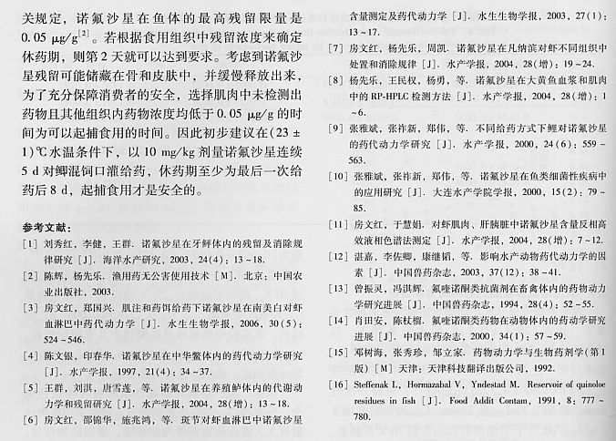 諾氟沙星在鯽體內(nèi)的藥動(dòng)學(xué)及殘留研究5