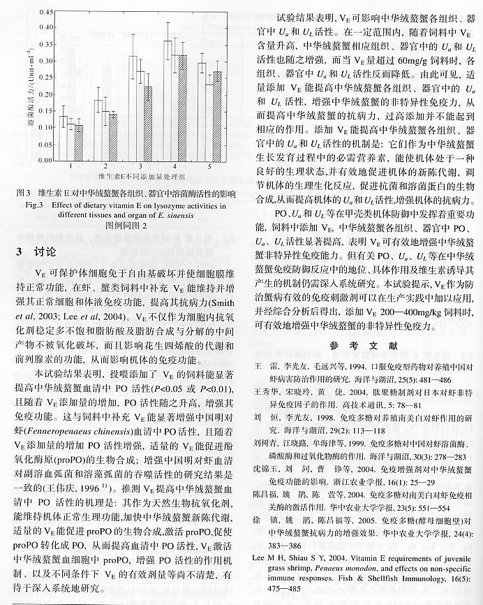維生素E對中華絨鰲蟹(Eriocheir sinensis)酚氧化酶、抗菌力和溶菌酶活性的影響4