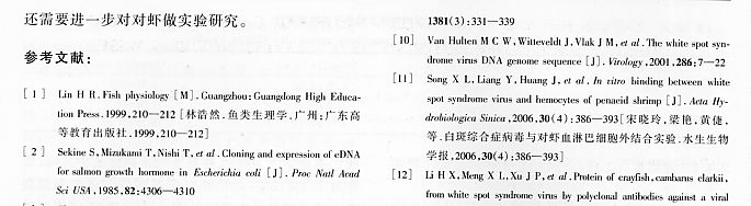 鯉魚生長(zhǎng)激素和對(duì)蝦白斑病毒囊膜蛋白VP28的融合表達(dá)及功能研究3