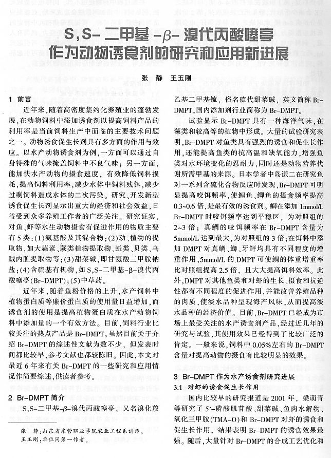 S,S-二甲基-β-溴代丙酸噻亭作為動(dòng)物誘食劑的研究和應(yīng)用新進(jìn)展1