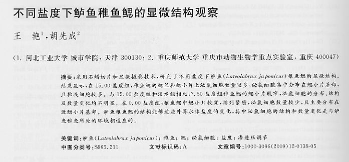 不同鹽度下鱸魚稚魚鰓的顯微結(jié)構(gòu)觀察