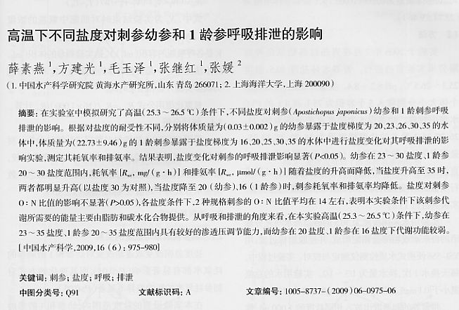 高溫下不同鹽度對(duì)刺參幼參和1齡參呼吸排泄的影響