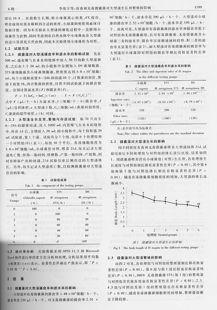 有毒和無毒微囊藻對大型溞生長和繁殖的影響2