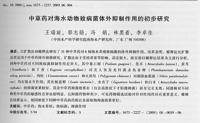 中草藥對海水動物致病菌體外抑制作用的初步研究