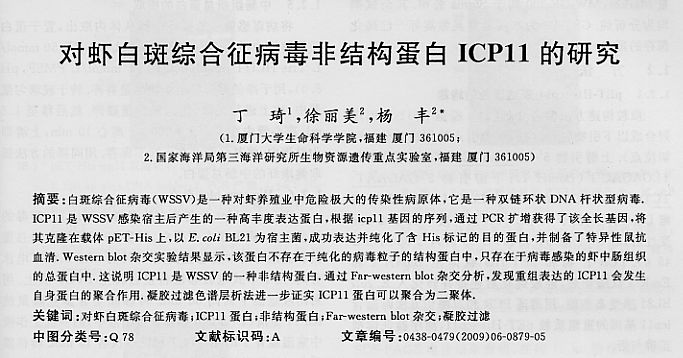 對蝦白斑綜合癥病毒非結(jié)構(gòu)蛋白ICP11的研究