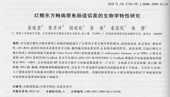 紅鰭東方鲀病原魚腸道弧菌的生物學(xué)特性研究