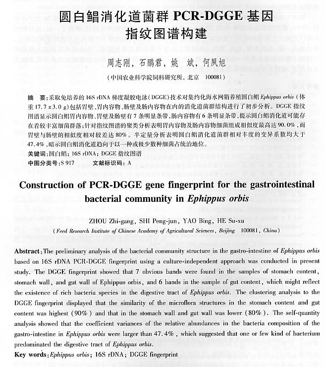 圓白鯧消化道菌群PCR-DGGE基因指紋圖譜構(gòu)建1