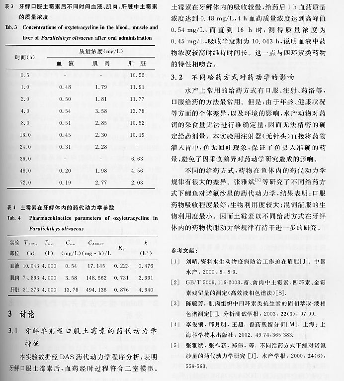 土霉素在牙鲆體內(nèi)的藥代動(dòng)力學(xué)研究2