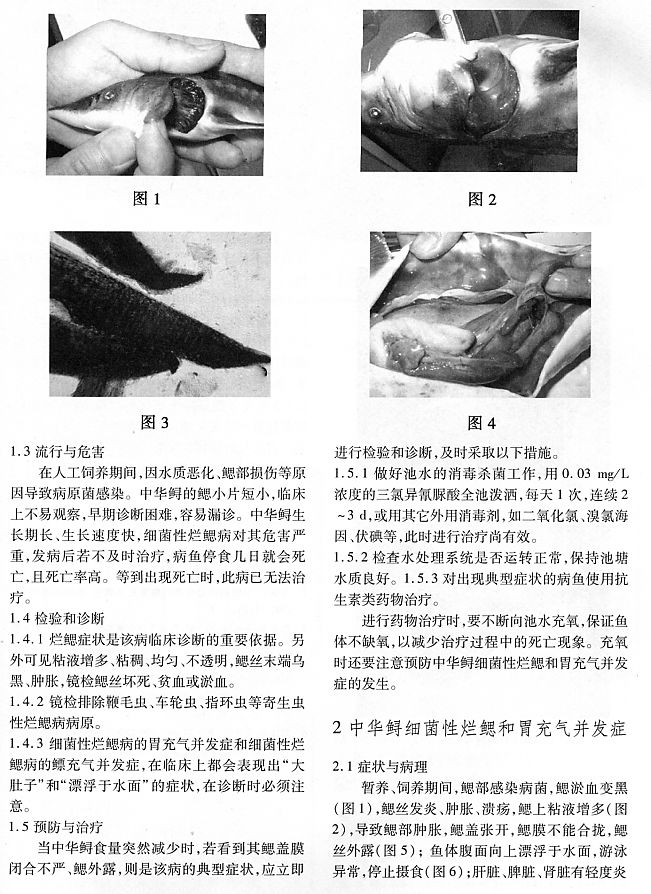 中華鱘細菌性爛鰓病和胃充氣并發(fā)癥的臨床診斷和控制2