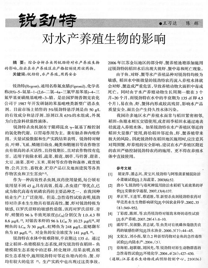 銳勁特對(duì)水產(chǎn)養(yǎng)殖生物的影響