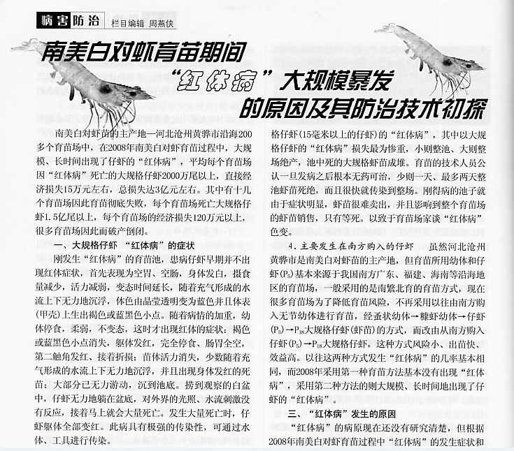 南美白對(duì)蝦育苗期間“紅體病”大規(guī)模爆發(fā)的原因及其防治技術(shù)初探1