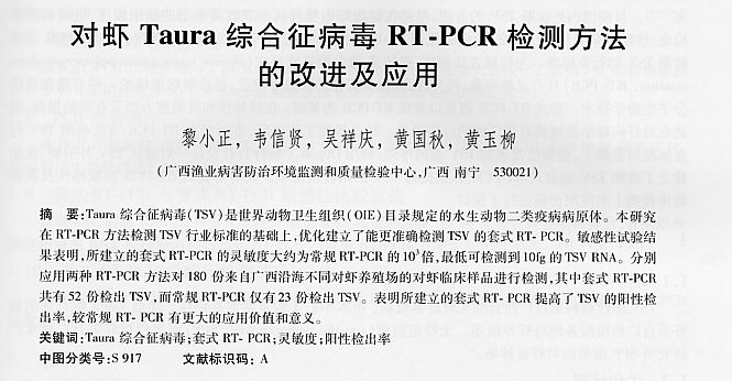對(duì)蝦Taura綜合征病毒RT-PCR檢測(cè)方法的改進(jìn)及應(yīng)用