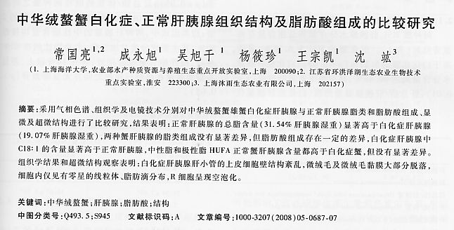 中華絨螯蟹白化、正常肝胰腺組織結(jié)構(gòu)及組織酸組成的比較研究