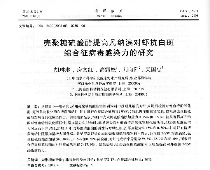 殼聚糖硫酸脂提高凡納濱對(duì)蝦抗白斑綜合征病毒感染力的研究