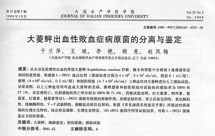 大菱鲆出血性敗血癥病原菌的分離與鑒定