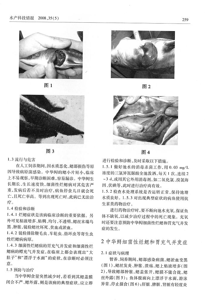 中華鱘細菌性爛鰓病和胃充氣并發(fā)癥的臨床診斷和控制2