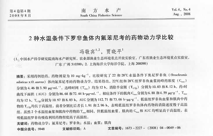 2種水溫條件下羅非魚(yú)體內(nèi)氟苯尼考的藥物動(dòng)力學(xué)比較