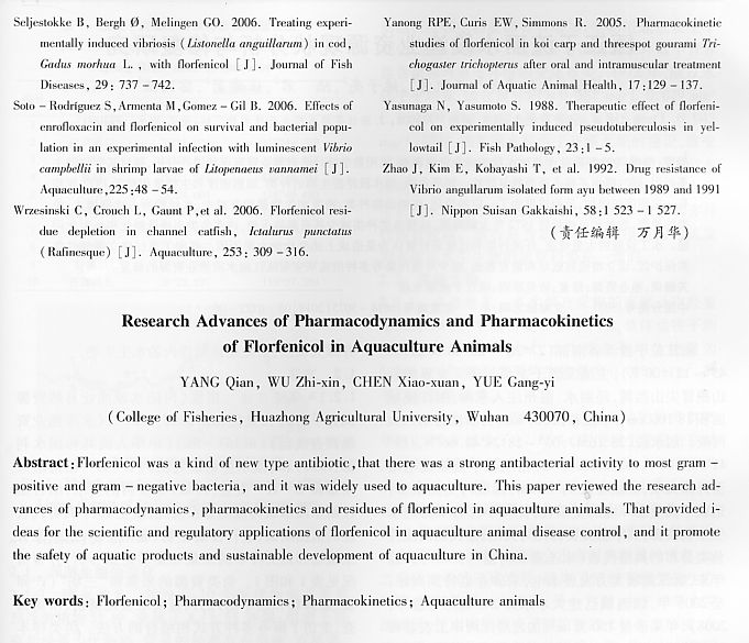 氟苯尼考的藥效學及其在水產(chǎn)動物中的代謝動力學研究進展6