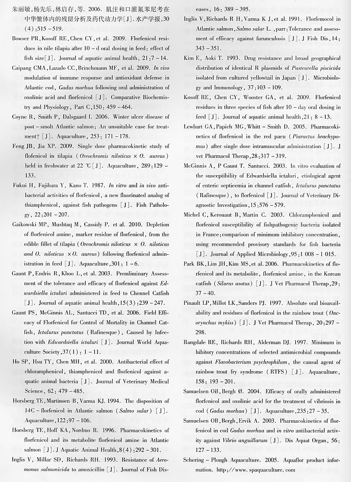 氟苯尼考的藥效學(xué)及其在水產(chǎn)動(dòng)物中的代謝動(dòng)力學(xué)研究進(jìn)展5