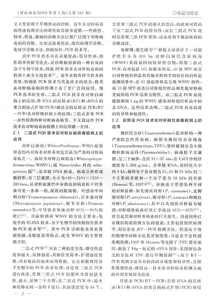PCR 技術(shù)在對蝦病毒病檢測上的應用及研究進展 2