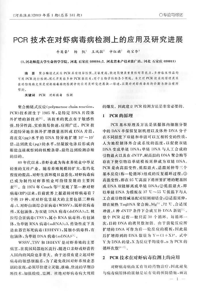 PCR 技術(shù)在對蝦病毒病檢測上的應(yīng)用及研究進展 1
