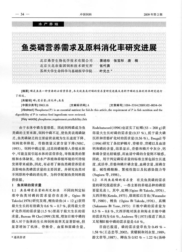 魚類磷營養(yǎng)需求及原料消化率研究進(jìn)展1