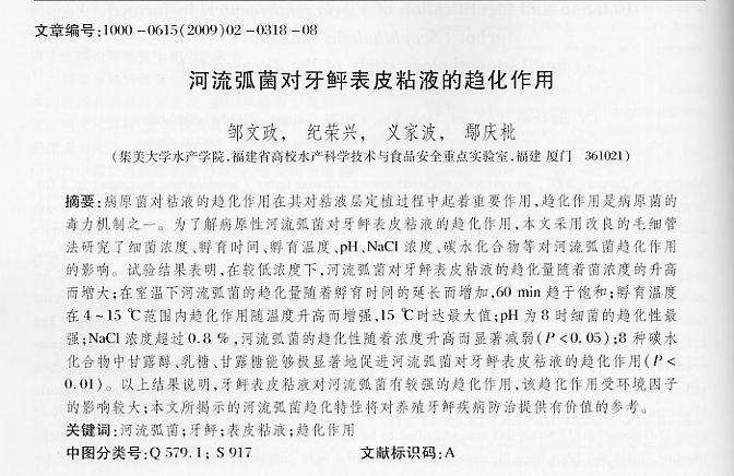 河流弧菌對牙鲆表皮粘液的趨化作用