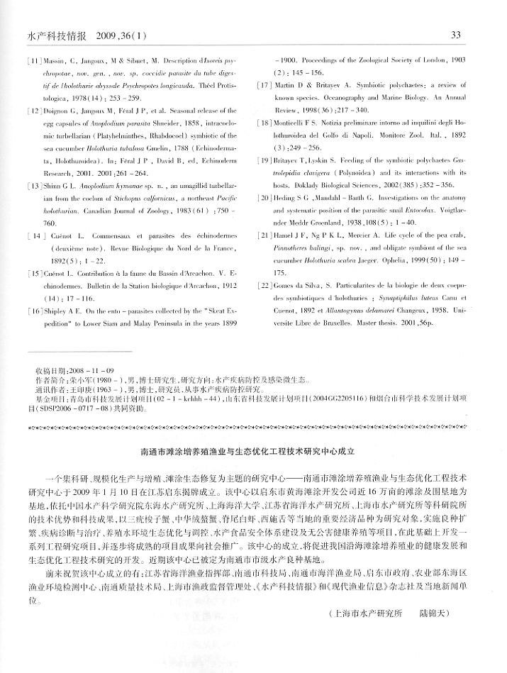 國(guó)外海參寄生蟲(chóng)病研究概況4