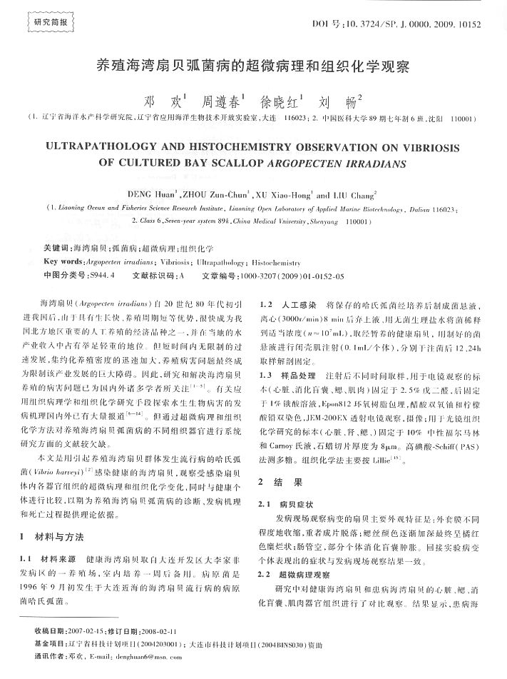 養(yǎng)殖海灣扇貝弧菌病的超微病理和組織化學(xué)觀察1