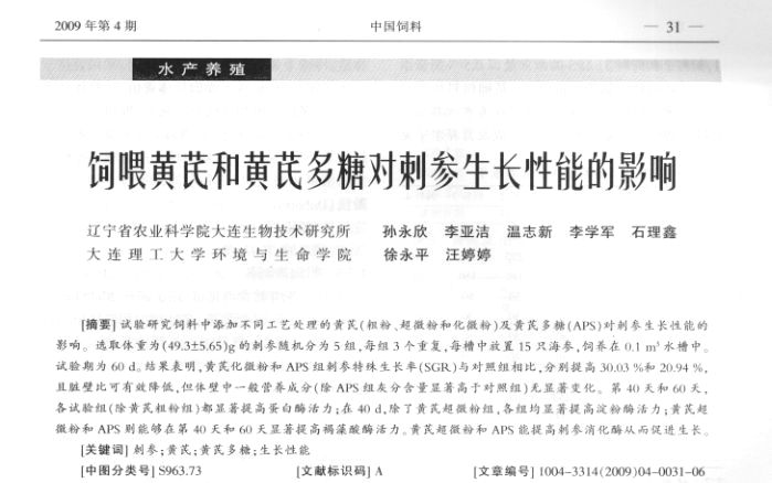 飼喂黃氏和黃氏多糖對(duì)刺參生長(zhǎng)性能的影響