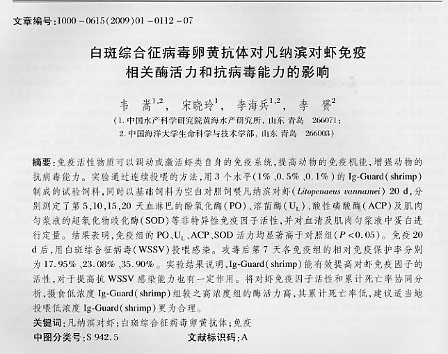 白斑綜合征病毒卵黃抗體對凡納濱對蝦免疫相關(guān)酶活力和抗病毒能力的影響