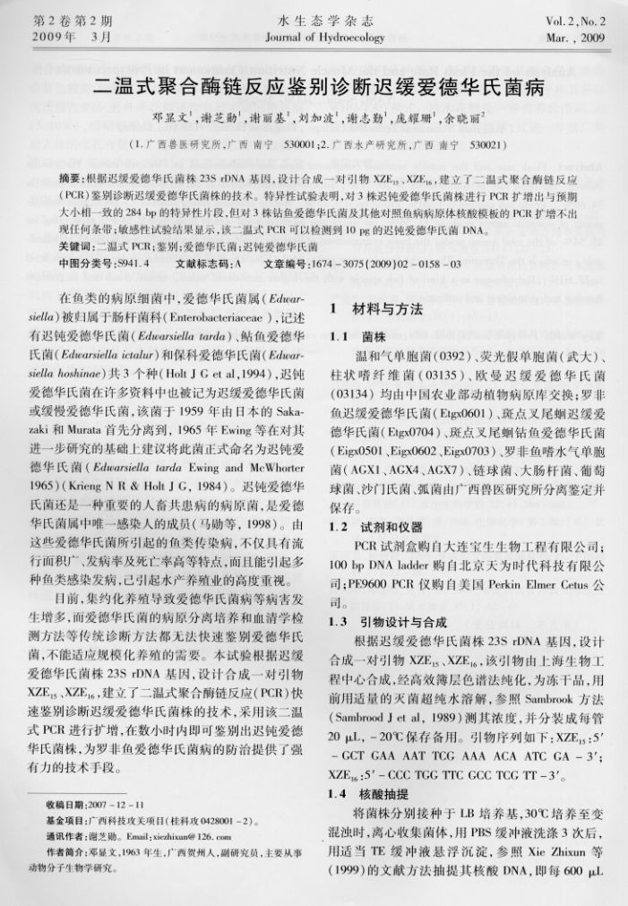 二溫式聚合酶鏈反應(yīng)鑒別診斷遲緩愛德華氏菌病 1