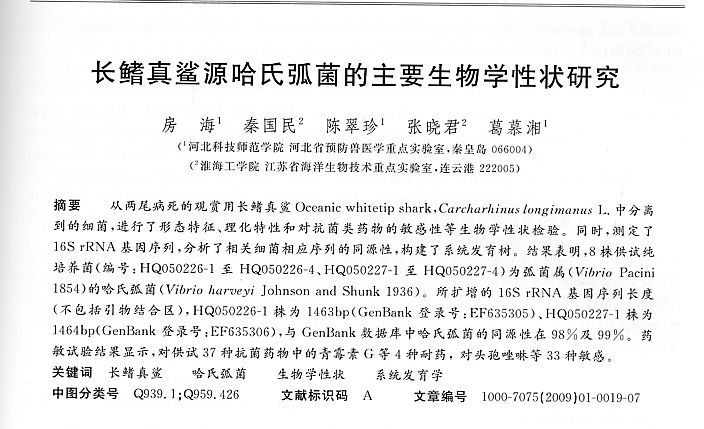 長鰭真鯊源哈氏弧菌的主要生物學(xué)性狀研究