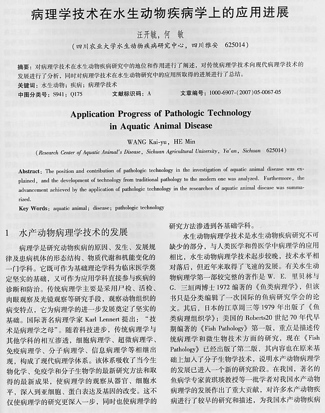 病理學(xué)技術(shù)在水生動物疾病學(xué)上的應(yīng)用進展1
