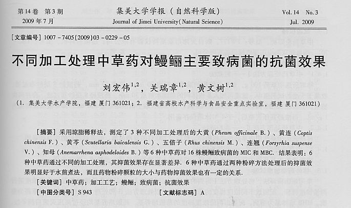 不同加工處理中草藥對(duì)鰻鱺主要致病菌的抗菌效果